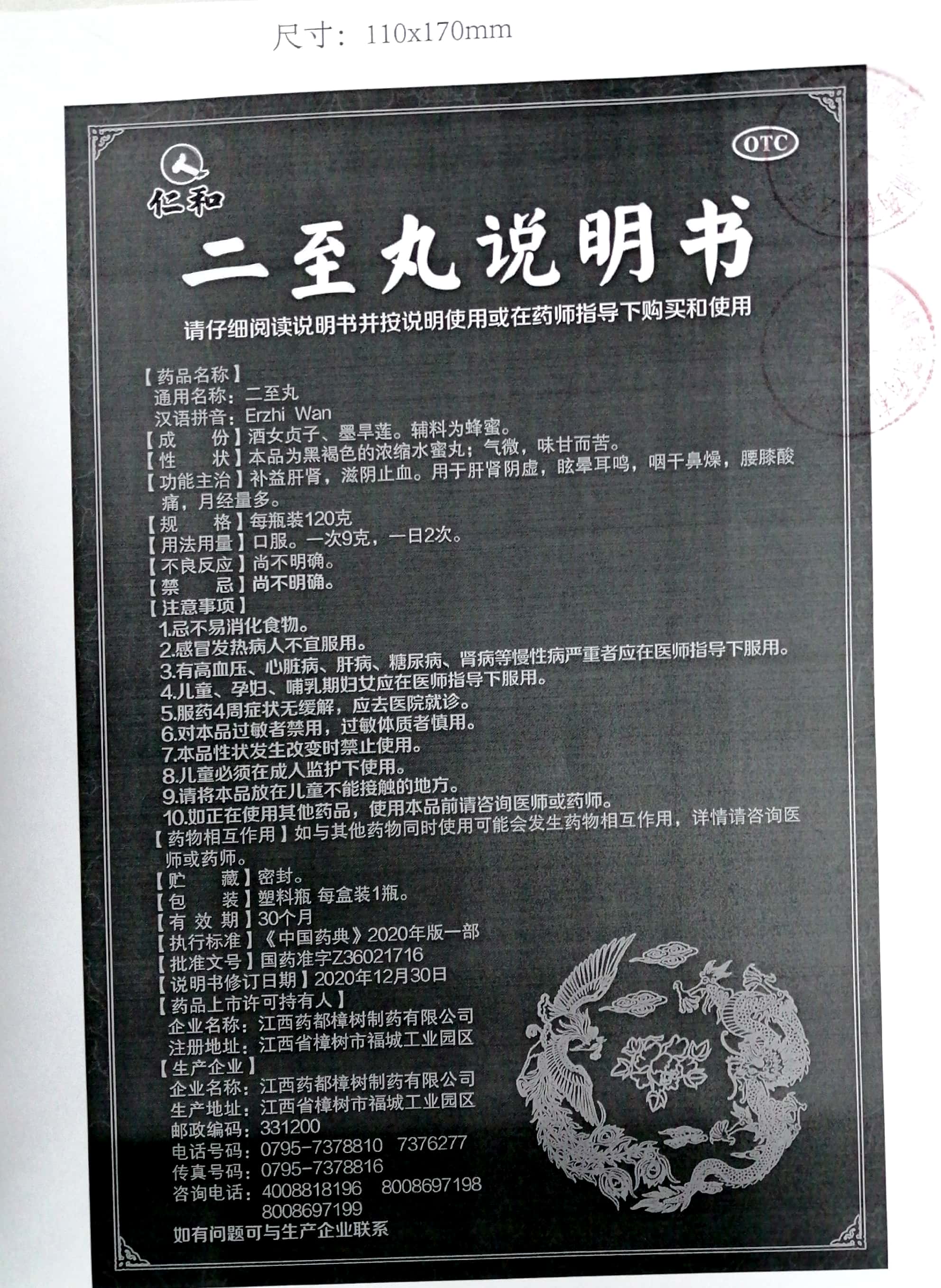 【主要成分】酒女貞子、墨旱蓮。輔料為蜂蜜。
